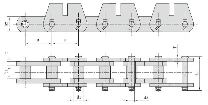 P152F24,帶附板輸送鏈,工程鏈條廠家,鏈條規(guī)格參數(shù)
