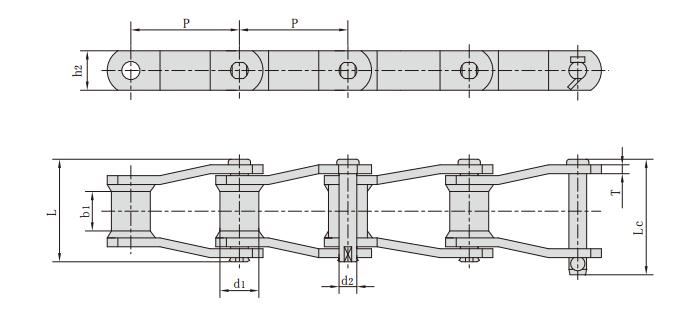 鏈條型號 節(jié)距 套筒直徑 內(nèi)節(jié)內(nèi)寬 銷軸直徑 銷軸長度 鏈板高度 鏈板厚度 抗拉強(qiáng)度 平均抗拉強(qiáng)度 每米長重