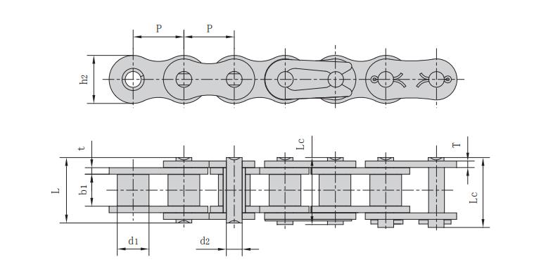注意:上述規(guī)格的雙排鏈和三排鏈、雙節(jié)距輸送鏈系列依照要求也適合鍍鎳。